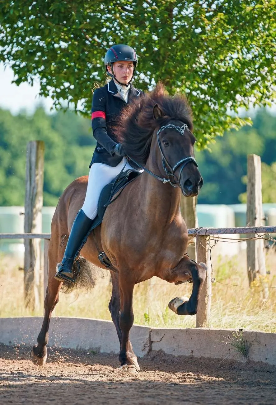 Steffi ist eine ausgezeichnete Pferdewirtschaftsmeisterin mit umfassenden Qualifikationen in der Pferdewirtschaft. Neben ihrem Abschluss als Pferdewirtin für Haltung und Service hat sie sich auf Spezialreitweisen, insbesondere Gangreiten, spezialisiert und ist als IPZV Trainerin C aktiv.